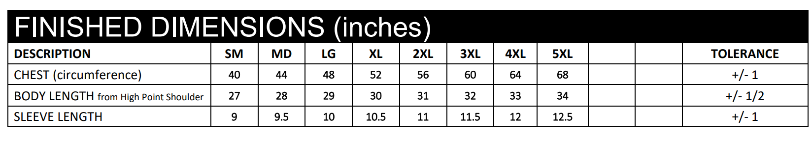 S-5XL (upcharges apply for 2XL-5XL)
