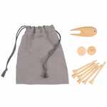 - Complete bamboo tee set - includes six 2.75" tees, one divot tool, and two ball markers